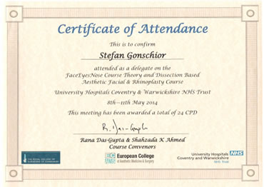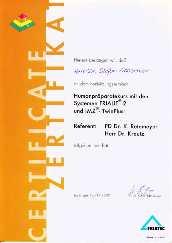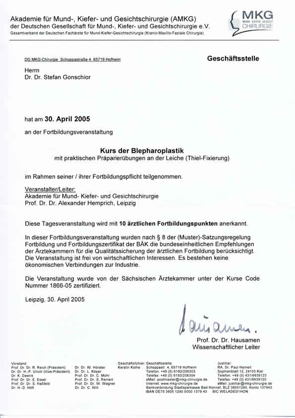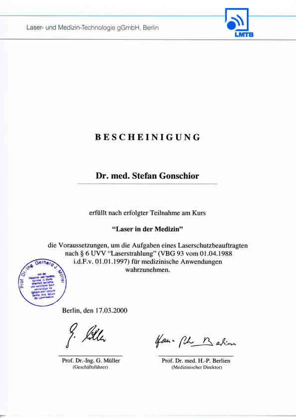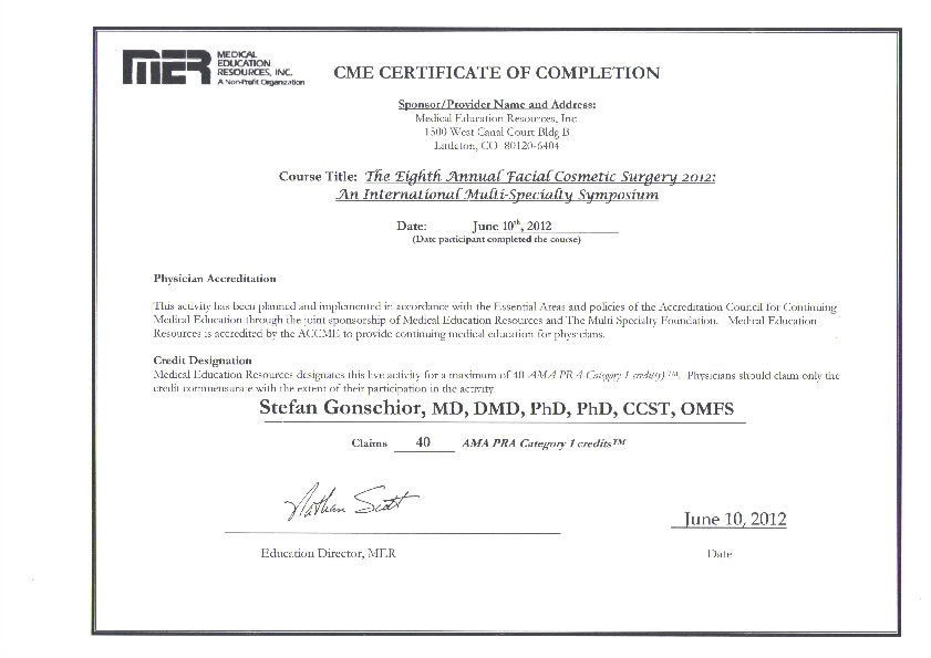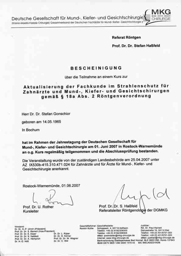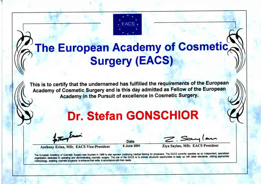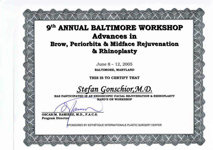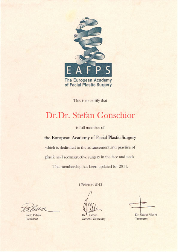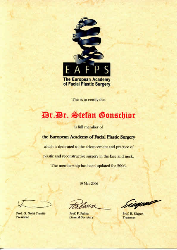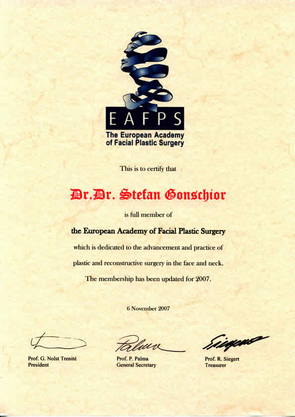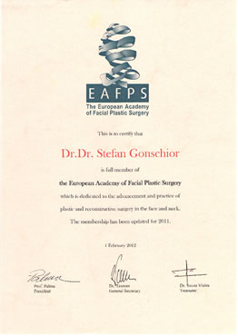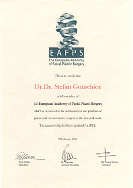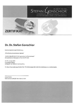 Dr. med. Dr. med. dent. Gonschior greift auf eine 18-jährige Ausbildung in der ästhetisch rekonstruktiven Chirurgie zurück: Er ist Facharzt für Gesichts-, Mund- und Kieferchirurgie (5 Jahre) mit der Zusatzqualifikation Plastische Operationen (3 Jahre).
