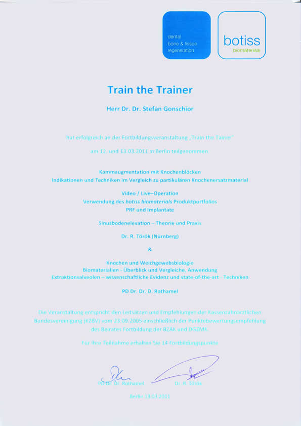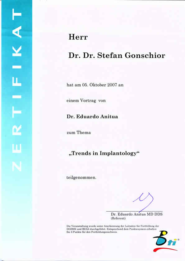 Dr. med. Dr. med. dent. Gonschior's herausragendes internationales Renommee resultiert aus seiner exzellenten und umfangreichen Ausbildung sowie einer ständigen Routine und Perfektionierung der Methoden. Das Ziel seiner Investitionen ist und bleibt der zufriedene Patient.