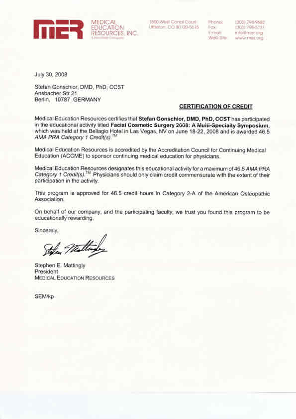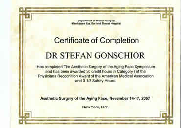 Die kosmetische Chirurgie wird nach Dr. med. Dr. med. dent. Gonschior's Ansicht in keinem einzigen Fachbereich während der Facharztausbildung ausreichend vermittelt. Um sich als Arzt in der kosmetischen Chirurgie zu profilieren, muss man in gewisser Weise besessen sein und zahlreiche Zusatzausbildungen nach dem Facharzt absolvieren.